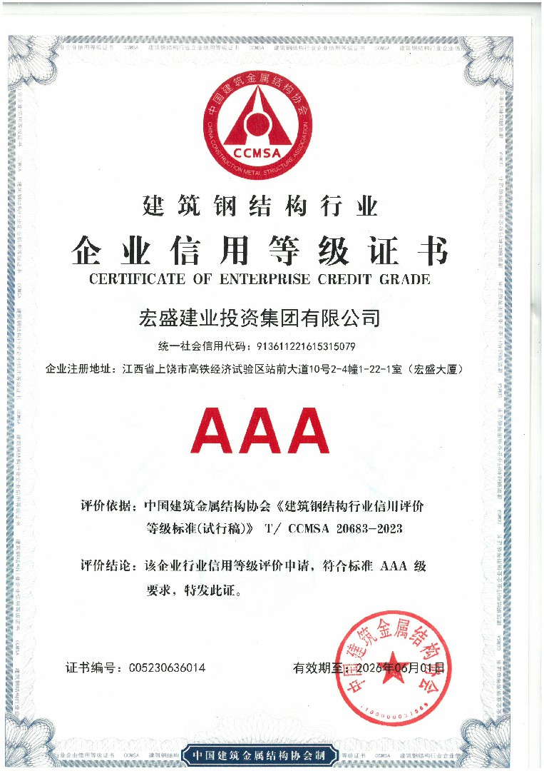 建筑鋼結(jié)構(gòu)行業(yè)企業(yè)信用AAA等級
