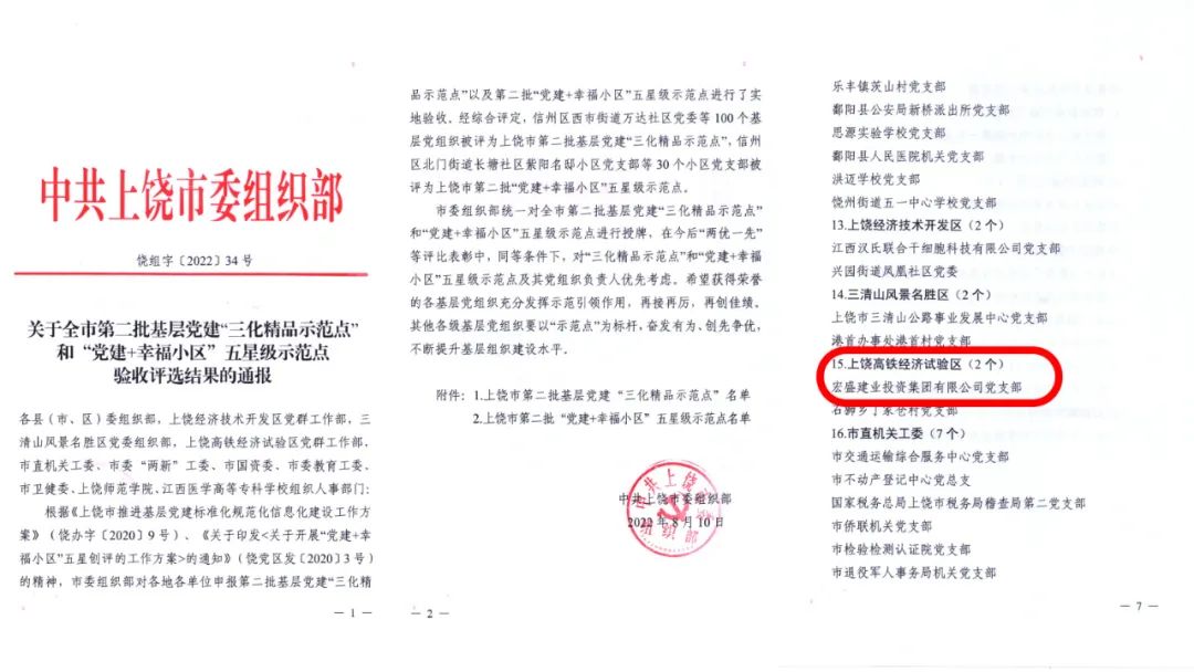 近日,宏盛建業(yè)投資集團黨支部獲評上饒市第二批基層“三化精品示范點”榮譽稱號。這是上級黨組織對集團黨建工作的高度肯定,滲透著全體黨員的辛勤付出和努力,更是對下一步黨建工作的鞭策和鼓勵。