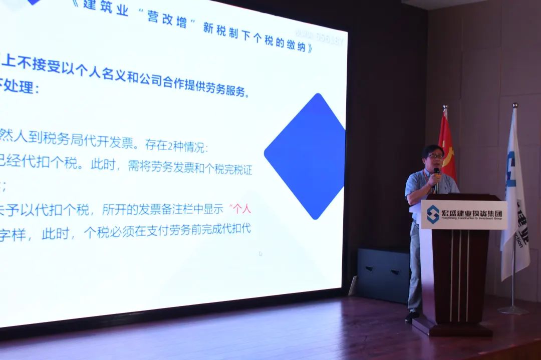 2022年8月8日,宏盛學(xué)堂財(cái)稅專(zhuān)項(xiàng)培訓(xùn)第一期《建筑業(yè)“營(yíng)改增”新稅制下個(gè)稅的繳納》于總部大樓八樓召開(kāi)。