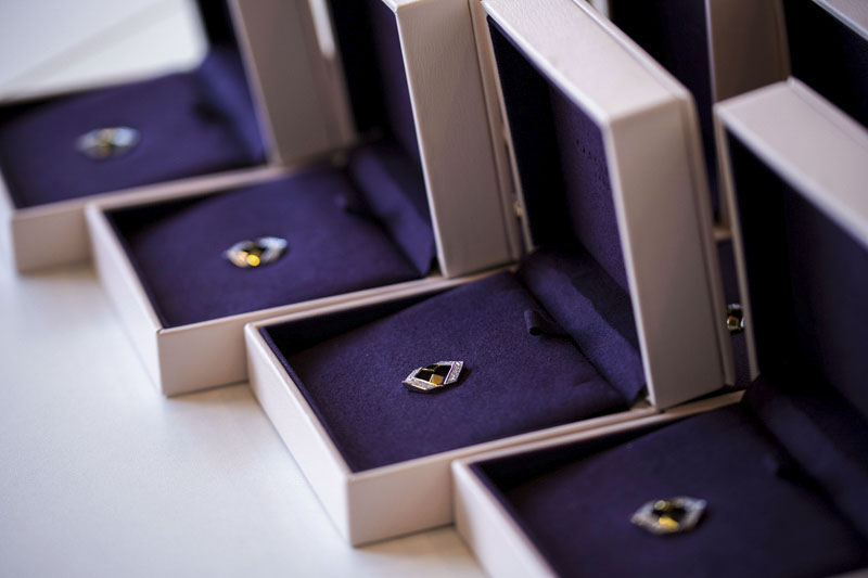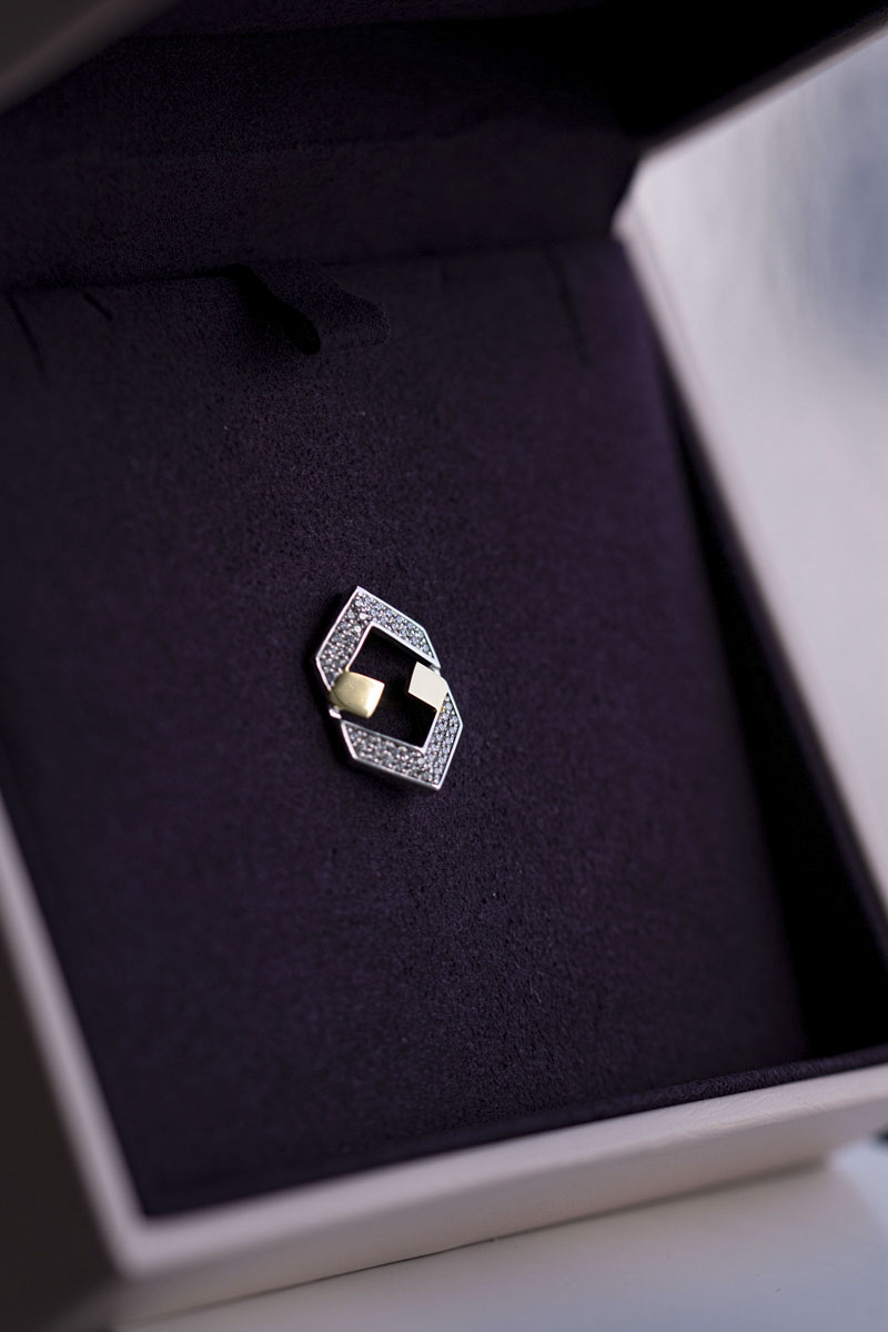 宏盛定制司徽,以2塊黃金+48顆鉆石作為主材質(zhì),以宏盛logo作為司徽樣式。集不菲價值、深刻寓意、無上榮譽于一體。