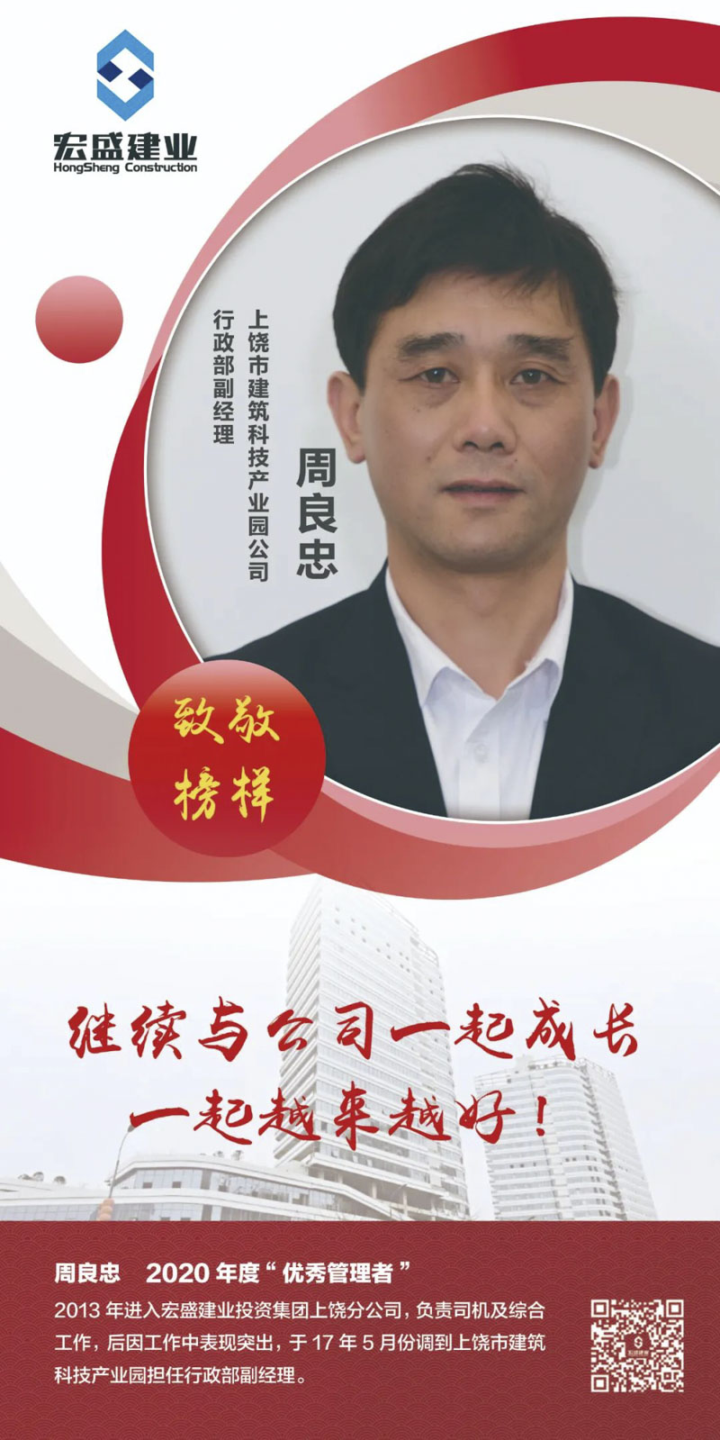 今天有幸采訪到了其中一位,宏盛建業(yè)投資集團(tuán)——上饒市建筑科技產(chǎn)業(yè)園公司的行政部副經(jīng)理周良忠,也是2020年度“優(yōu)秀管理者”獲得者,讓我們來聽聽他的一些心得。