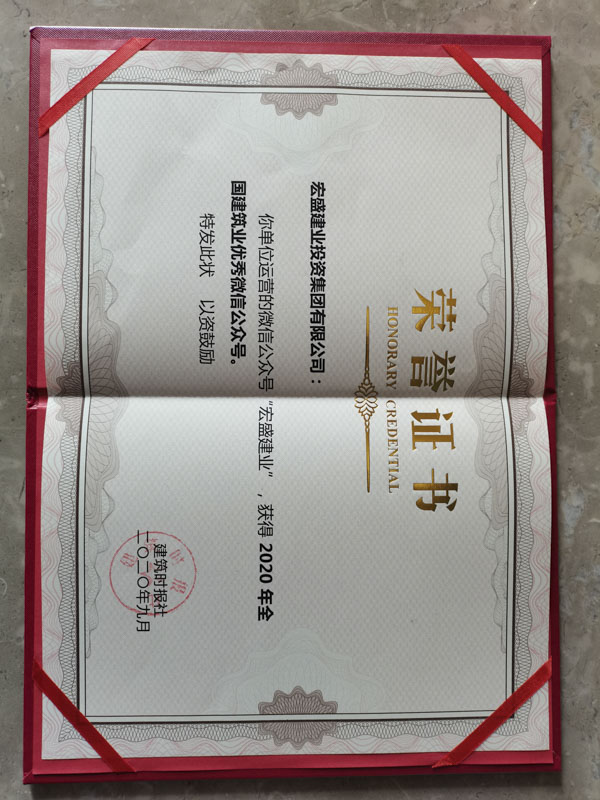 宏盛建業(yè)集團(tuán)榮獲“2020年全國建筑業(yè)優(yōu)秀微信公眾號”稱號