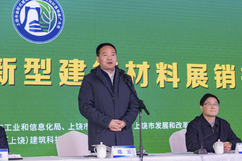 展銷(xiāo)會(huì)開(kāi)幕會(huì)上,陳云市長(zhǎng)宣布上饒市裝配式建筑和新型建筑材料展銷(xiāo)推廣大會(huì)正式開(kāi)幕。