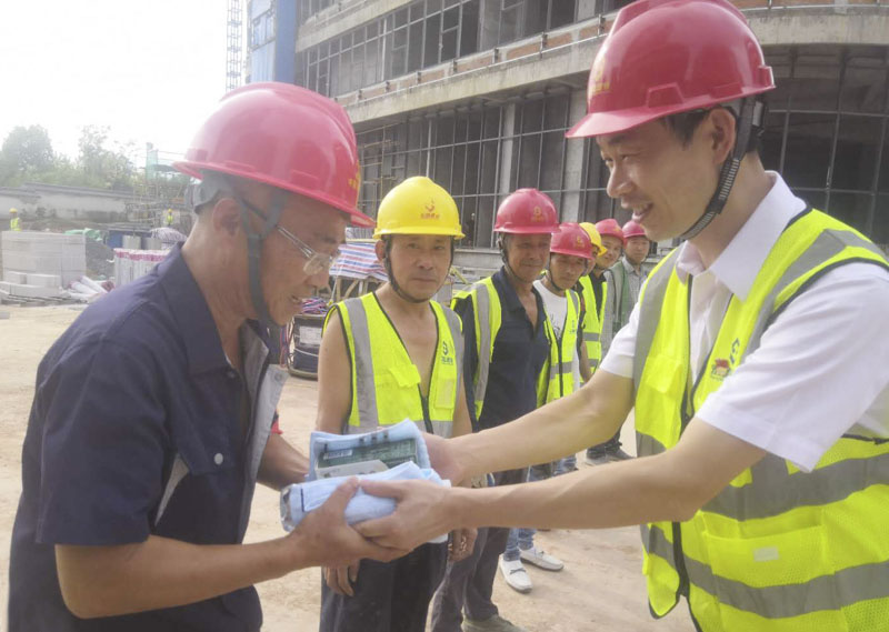 金慧一行一邊發(fā)放慰問品,一邊詢問施工人員工作生活中遇到的困難,提醒大家暑期施工要注意防暑和施工安全,鼓勵大家要精心組織,科學(xué)管理,攻堅克難,奮力拼搏,堅持安全與質(zhì)量并抓,持續(xù)推進項目建設(shè)進度。