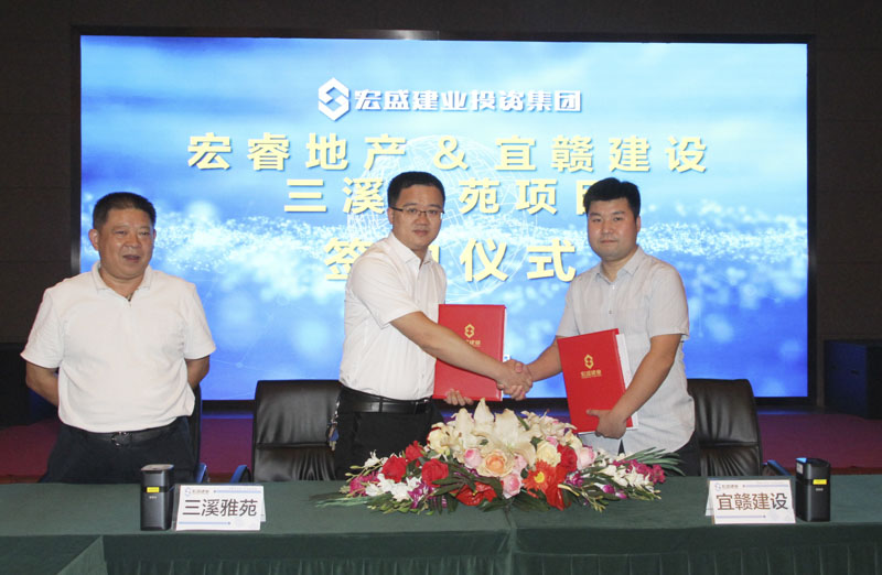 近日,宏睿地產(chǎn)、宜贛建設(shè)及項目勞務(wù)分包單位在宏盛建業(yè)上海總部舉行“三溪雅苑”項目總承包簽約儀式。集團董事長周金虎作宏睿地產(chǎn)控股股東出席簽約,宏睿地產(chǎn)總經(jīng)理張茜、宜贛建設(shè)法人代表俞磊、項目總肖洪全、勞務(wù)分包經(jīng)理陳震宇等參加簽約儀式。