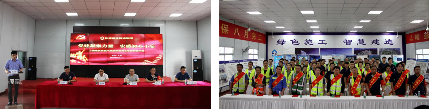 Guide:On July 1, with the neat and high-pitched national anthem, Hongsheng Jianye's July 1 commendation meeting with the theme of "Party Building Cohesive Strength, Hongsheng's Original Mind" was successfully held in Shangrao Jianye Silicon Valley Project Department. The project department commended "13 Hongsheng craftsmen, 3 excellent managers, 4 winning units, 1 safety star, 1 outstanding party activist and 1 outstanding Communist Party member" that emerged in the June battle And motivation.