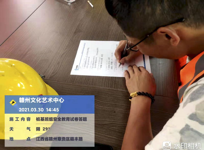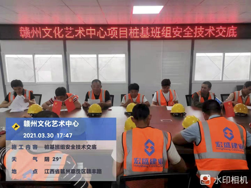 贛州訊 3月30日,贛州經開區(qū)文化藝術中心項目部組織樁基班組開展安全技術交底培訓。