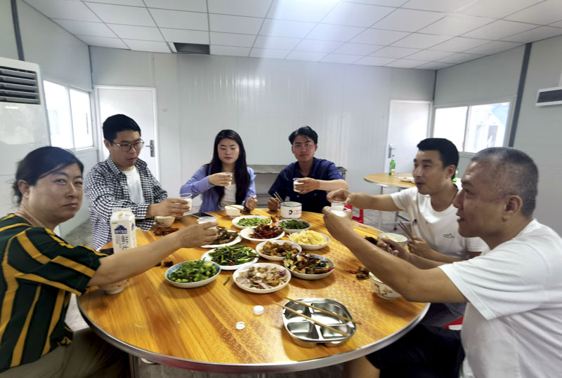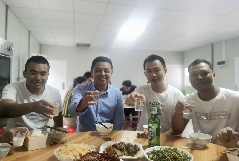 工作忙碌了整日,莫不疲勞、饑餓。下午6點整,忙碌了大半天的項目部餐廳一切準備就緒,傳來了開飯的消息,于是乎大家紛紛離開辦公區(qū)域匯聚至餐廳入席就餐。一桌豐盛的家常菜配以薄酒,組成了項目部生日會活動溫暖的開端。