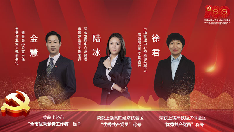 宏盛建業(yè)黨支部副書(shū)記、董事會(huì)辦公室主任金慧榮獲“上饒市優(yōu)秀黨務(wù)工作者”稱號(hào),宏盛建業(yè)黨支部委員、綜合發(fā)展中心總經(jīng)理陸冰和宏盛建業(yè)黨支部委員、市場(chǎng)管理中心資質(zhì)部負(fù)責(zé)人徐君榮獲高鐵經(jīng)濟(jì)試驗(yàn)區(qū)“優(yōu)秀共產(chǎn)黨員”稱號(hào)。