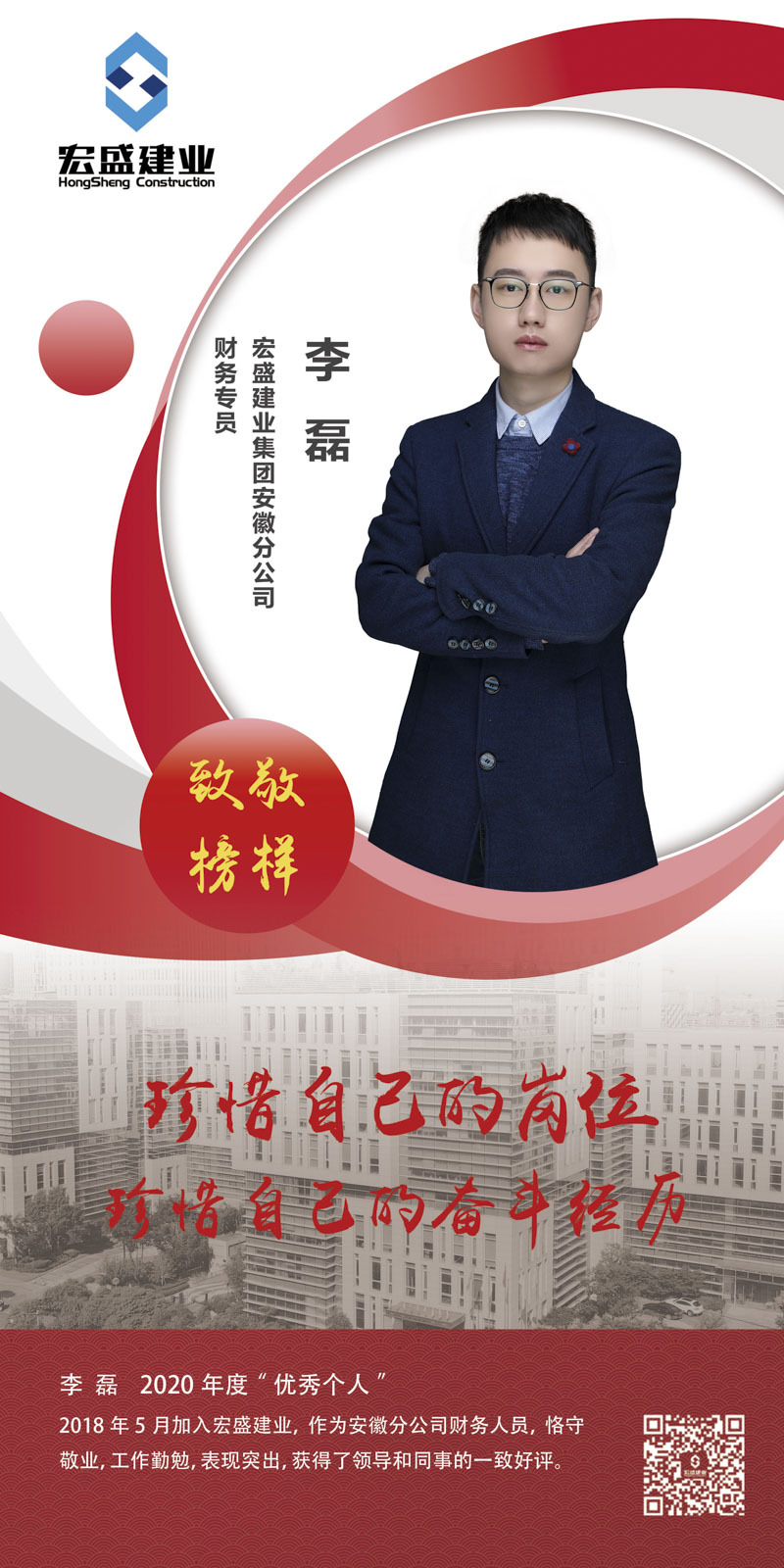 2018年,李磊加入集團(tuán),2019年入職集團(tuán)安徽分公司擔(dān)任財(cái)務(wù)專員。負(fù)責(zé)處理安徽分公司日常費(fèi)用報(bào)銷、辦公室用品采購(gòu)事宜,同時(shí)也要負(fù)責(zé)跟進(jìn)、對(duì)接安徽分公司范圍內(nèi)所有項(xiàng)目從開具外經(jīng)證到撥付工程款的一系列配套工作。除此之外,他還兼任了集團(tuán)樂平市第十九小學(xué)項(xiàng)目財(cái)務(wù)工作及項(xiàng)目分公司工作。